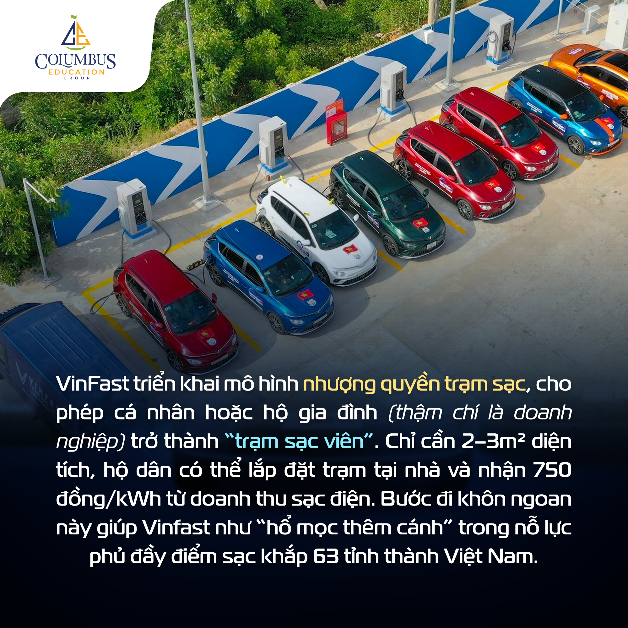 Vinfast hiểu rằng hạ tầng trạm sạc chính là “huyết mạch” của ngành xe điện. Ở đâu có trạm sạc, ở đó người tiêu dùng sẽ được khuyến khích chuyển đổi sang phương tiện xanh, đặc biệt tại các tỉnh vùng xa, khu vực du lịch, hay các đô thị phát triển du lịch xanh. Thực tế đã chứng minh, khi trạm sạc xuất hiện, người tiêu dùng rất hào hứng sở hữu xe điện, nhất là những chiếc xe đầu tiên của họ. Chính vì vậy, VinFast chủ động kiểm soát toàn bộ hệ thống trạm sạc, biến nó thành một Comparative Advantage – Lợi thế so sánh mà các đối thủ chưa thể nào sánh kịp ngay tại thị trường Việt Nam.