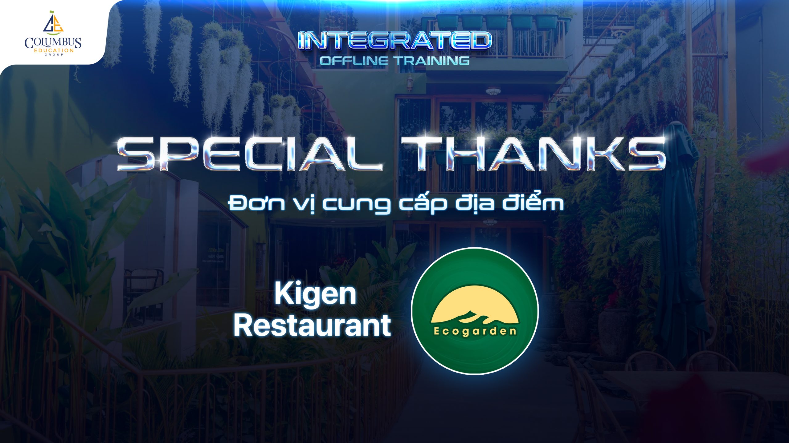 Bên cạnh đó, CEG cũng xin gửi lời cảm ơn sâu sắc đến Kigen Restaurant – Nhà hàng Trà & Cà phê – Đơn vị hỗ trợ địa điểm và phục vụ bữa trưa đã đóng góp vào thành công của Khóa học lần này.